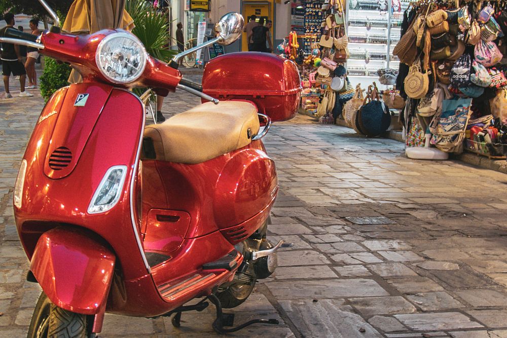 Scooter on a beautiful evening, on the Greek island of Kos, in Kos Town.