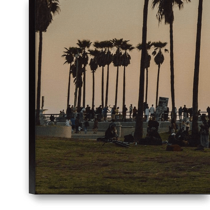 The palm trees stand apart, but together they form a rhythm. They break up the empty beach without filling it, like markers in a landscape that follows its own time. The air is clear but not exuberant, the light dry and direct, without nostalgic softness.