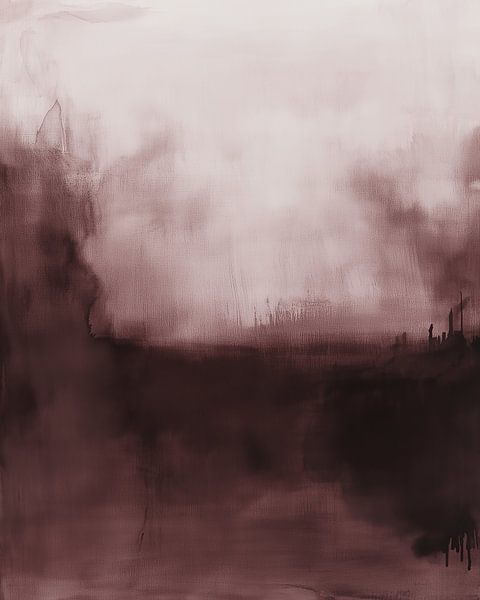 As the day fades, the moment is evoked when light and dark slowly merge, without a clear boundary. The image seems to hover between landscape and emotion: at the top, a soft, almost ethereal haze of pale pink hues reminiscent of the day’s final breath, whilst at the bottom, deep, saturated purples and browns accumulate like a silent,…