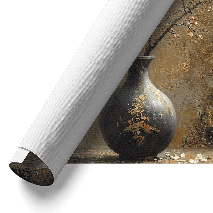 Details: still life, blossom, vase, modern, Japandi, simplicity, earth tones, black, white, brown
