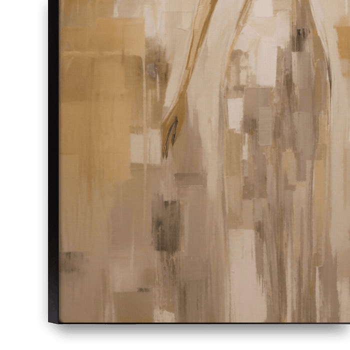 "Whispers of Seduction" is a sophisticated work of art that exudes subtle hints of attraction and charm. The image depicts an elegant female figure enveloped in a veil of abstract shapes, with her pose and surrounding colours evoking a sense of mystery and seduction. The soft colour palette of cream and gold tones enhances the evocative…