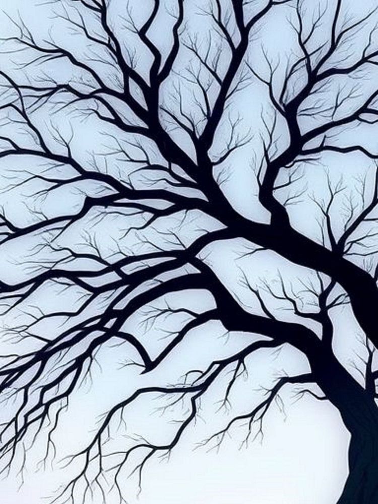 This striking piece captures the stark and serene beauty of a winter landscape. A single, magnificent tree stands silhouetted against a cool, muted sky, its intricate network of branches reaching out like delicate veins. The deep, shadowy trunk provides a powerful anchor to the ethereal background, creating a captivating contrast between strength and vulnerability. This artwork evokes a sense of quiet introspection and timeless elegance, making it a perfect statement piece for any home or office. It is a powerful reminder of nature's enduring grace, even in its most stripped-down form.