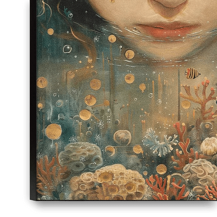 Titled "Whispers of the Ocean", this image shows a young girl immersed in the wonders of the sea, her hair and thoughts intertwined with the richness of marine life. The multitude of colours and patterns that form her crown speaks of the rich biodiversity and delicate connection we humans have with the ocean. This work offers a serene…