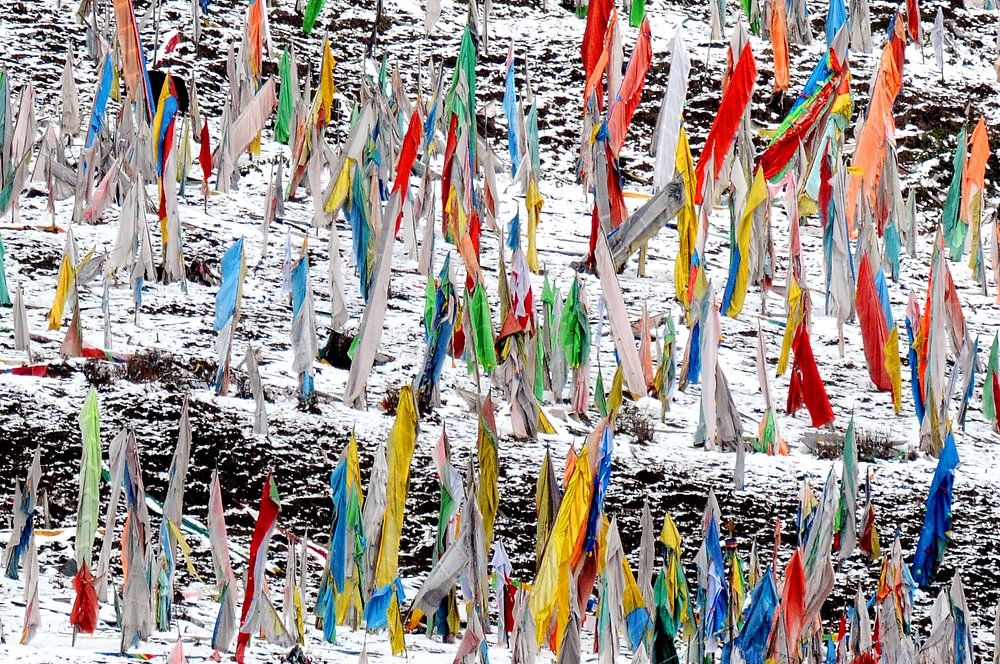 In Tagong, at the heart of the Tibetan plateau in Sichuan, thousands of prayer flags color the landscape as if they were thoughts stitched to the wind. Each strip of cloth, tattered or new, is a voice, a hope, a mantra dissolving into thin air.