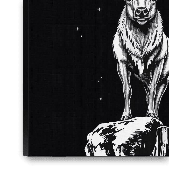 A majestic white deer stands proudly against a deep black background, its glowing purple antlers surrounded by delicate starry night ornaments. The scene feels mystical, elegant, and celestial. Ideal for customers who love fantasy wildlife art, this poster adds depth and sophistication to living rooms, bedrooms, or any modern décor…