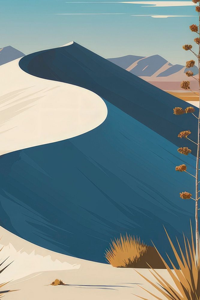 Gentle sand dunes merge with a clear sky and cast mysterious shadows. The minimalist, warm colour tones and elegant plant structure capture the magic of nature. This work of art lends a relaxed, timeless atmosphere to any living room and invites you to discover adventures in the wild and romantic natural world.