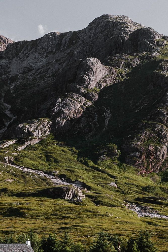 This cute white house can be found in the beautiful surroundings of Glencoe, Scotland. This black and white photo fits nicely in a colorful interior.