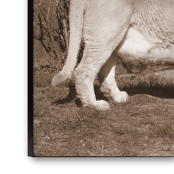 Lions usually have a hazel or golden brown colour for their fur. However, in the case of white lions, the fur is either completely white or a very pale version of the usual hazel fur. The colour of the coat can range from blonde to almost white. This colouration is inherited from the parents but is a recessive trait, meaning that a hazel coloured lion is more likely to be born from hazel coloured lions than that of a white lion. Similarly, breeding in white lions can result in brown necks. source wikipedia.