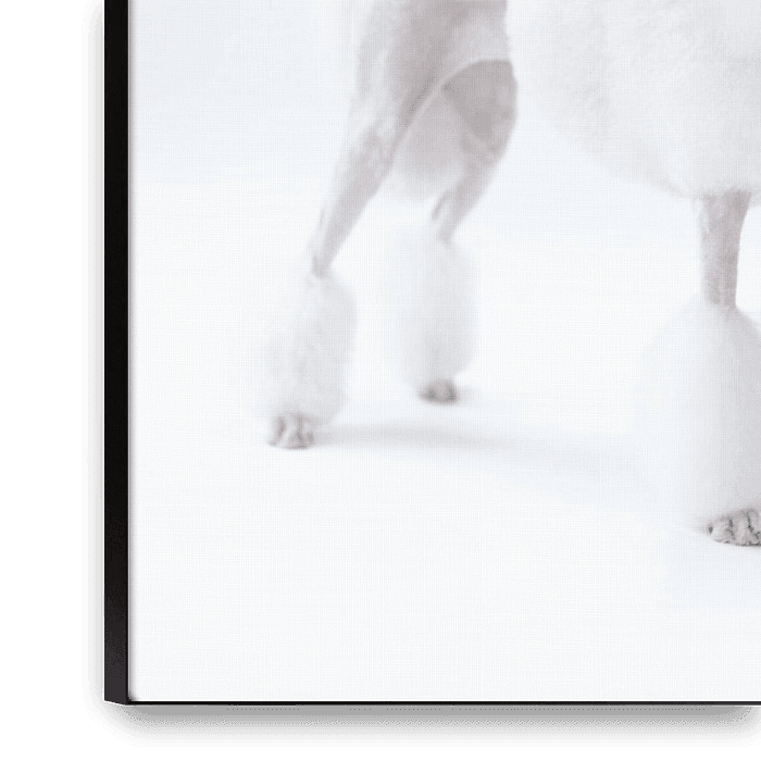 White poodle against white background