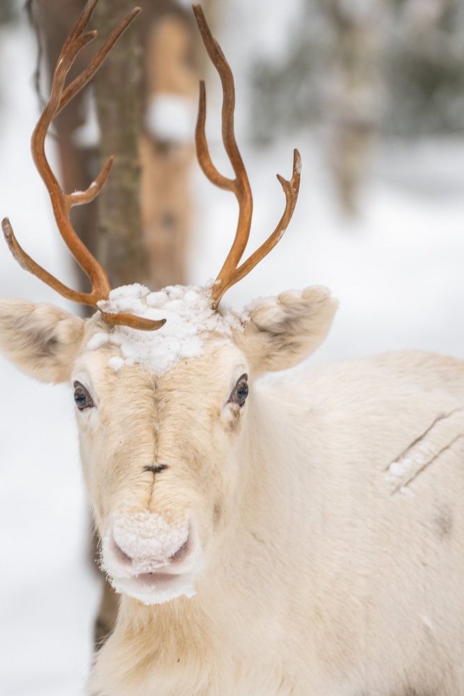 White reindeer in the snow in the forest by Leo Schindzielorz