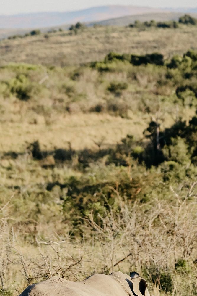The beauty of South African nature in pictures. A white rhino at dawn, gazing into the distance.