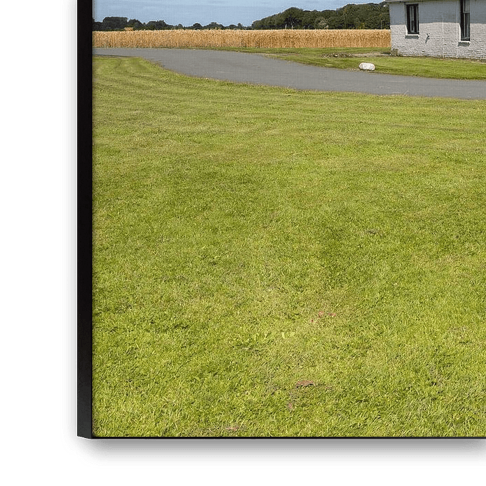 In the Groningen countryside stands this picturesque cottage. Years ago, this house was on the Brinta packaging, which is why it is popularly called the Brinta house. The white house stands out beautifully against the cloudy sky. Behind the house a wheat field. And a row of trees. In the foreground a road and grass.