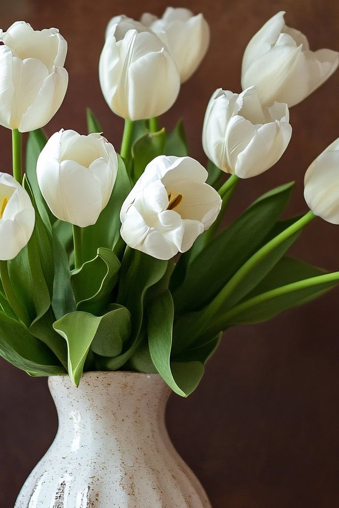 A beautiful work of art that exudes timeless charm. This still life shows a simple, rustic vase filled with delicate white tulips, set against a warm, neutral background. The subtle play of colours of white and green contrasts beautifully with the earthy tones of the vase and background. Perfect as a decoration in a living room or…