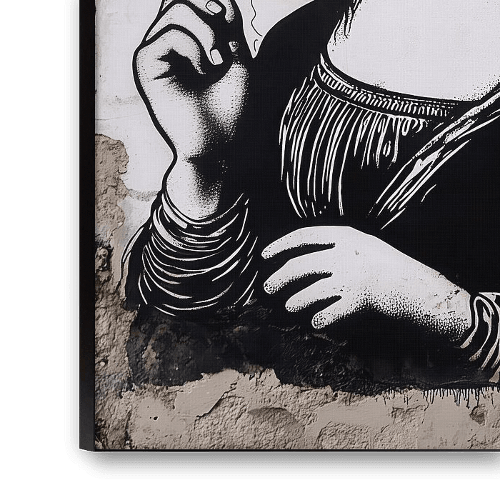 The Mona Lisa's mysterious smile enchants art lovers worldwide. But why is she actually smiling? This street art provides the answer: Smile - It confuses people. Actually a saying from the Joker in the Batman films. This work puts the saying into a new context. In any case, you now know why Mona Lisa smiles.