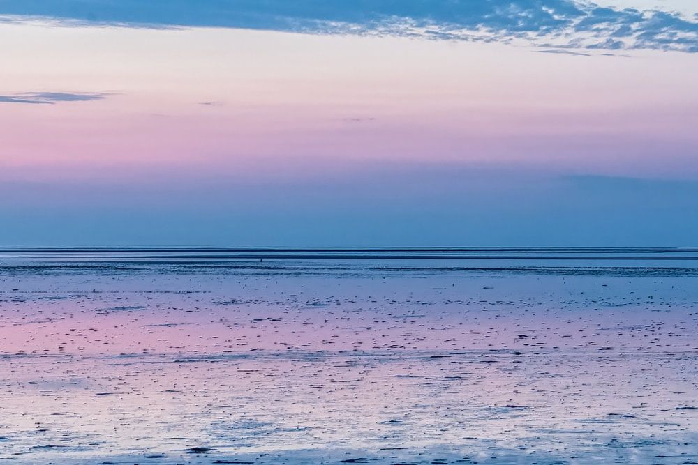 After sunset, the sky colours pastel on the mud flats in Wierum. The beautiful reflection splits the picture into sky and mudflats, into soft and rough, which evokes a sense of contradiction in me.