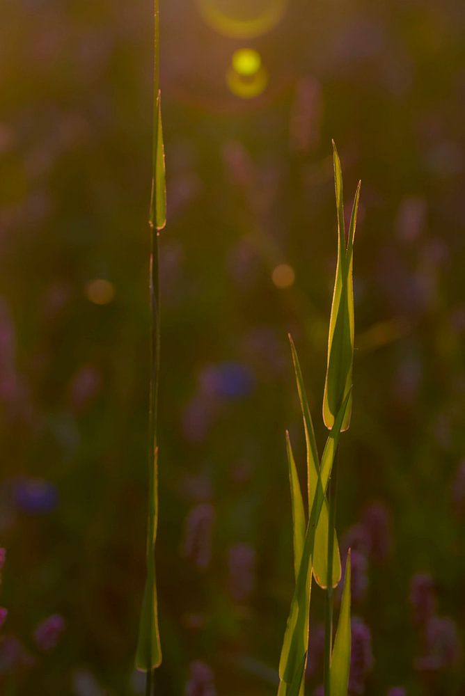 Wild flowers during sunrise in a meadow.