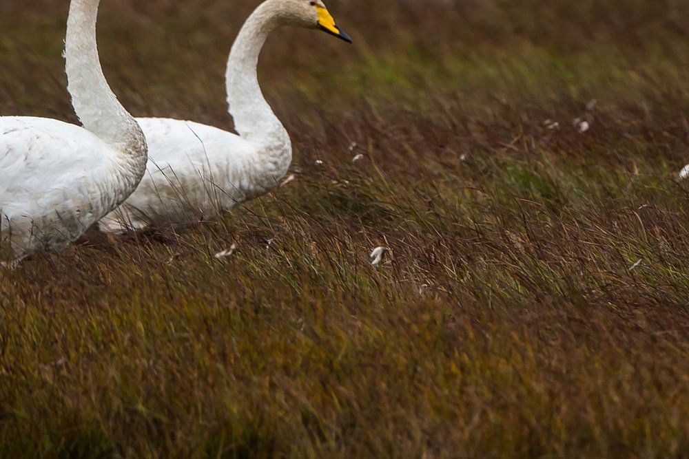 Wild swans in Iceland's Highlands. Far from civilisation where in September this part of the Highlands is poorly accessible. Substantial river crossings had to be made to reach this quiet area where no humans can be found. In the middle of nowhere, there were suddenly foraging wild swans. Wonderful to see them in this incredibly beautiful landscape.