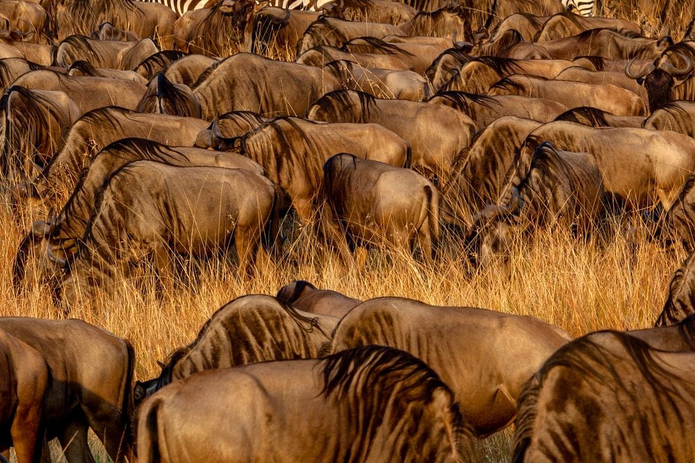 Wildebeest herd w. journeymen by Peter Michel