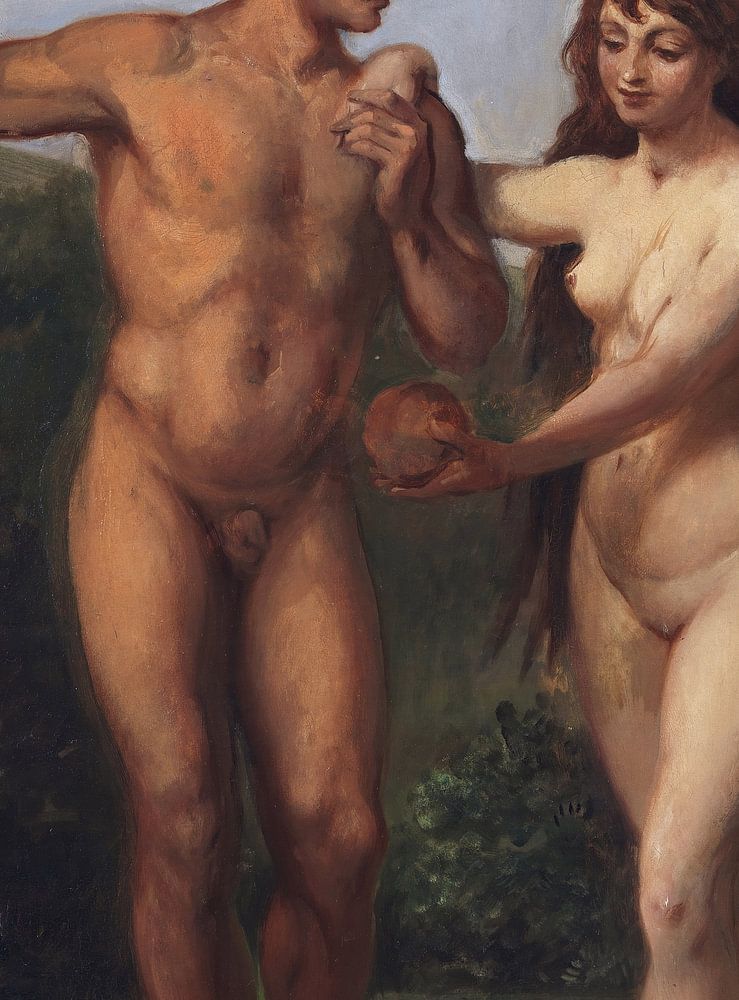 Together, Adam and Eve lived in the Garden of Eden. However, a snake managed to tempt Eve into eating the fruit of the forbidden tree of the knowledge of good and evil. At this, she induced Adam to eat from it too, which led to the Fall, after which they were expelled from Paradise.