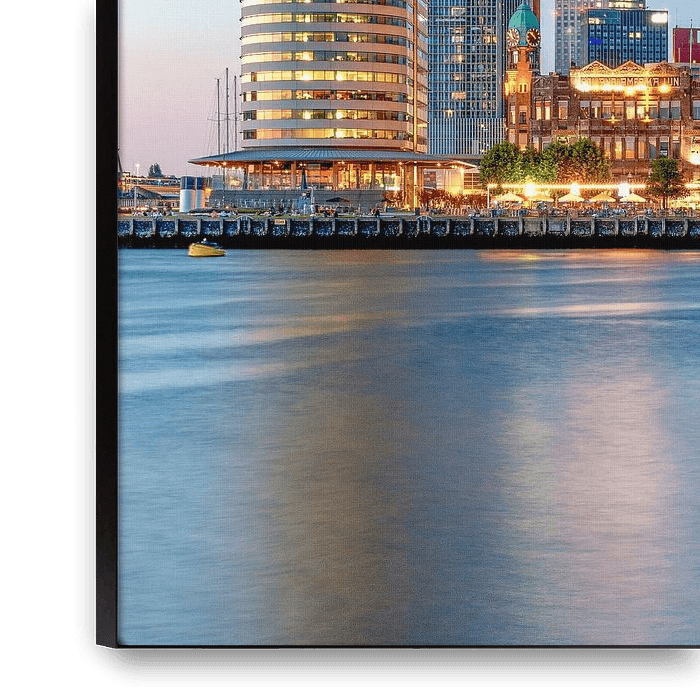 The wilhelminapier, with central Hotel New York, once the starting point of many ships to America, now a bustling hotspot! The Manhattan of Rotterdam!