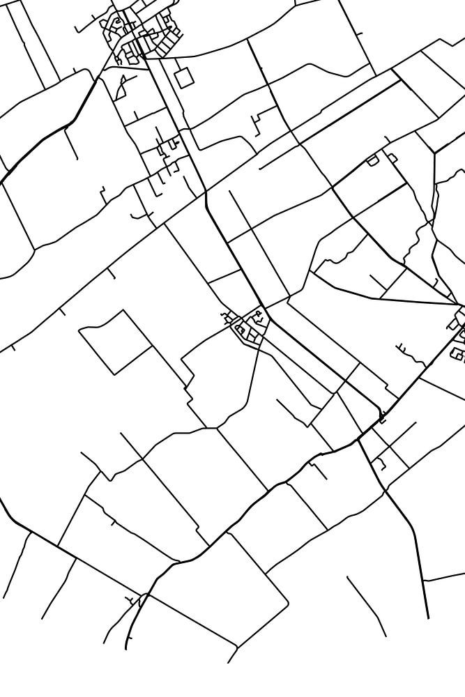 Black and white map, street map or street plan of Wilhelminaoord. Wilhelminaoord is located in the municipality of Westerveld, province of Drenthe. On the city map all public roads in Wilhelminaoord are included. Furthermore, the map is provided with the coordinates of the center of Wilhelminaoord.