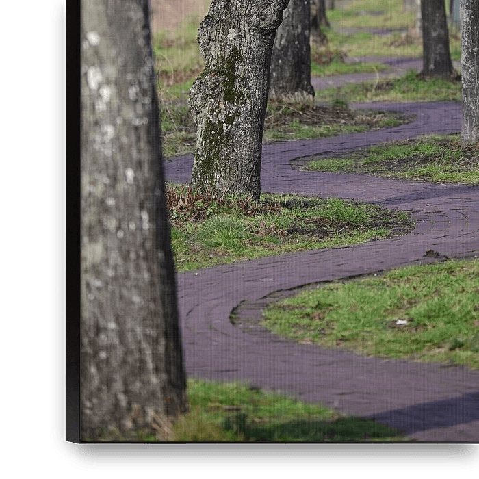 A winding path leads through quiet trees, with soft light and early seasonal colours. Calm and inviting—a timeless print that brings natural rhythm and space into your home or office.