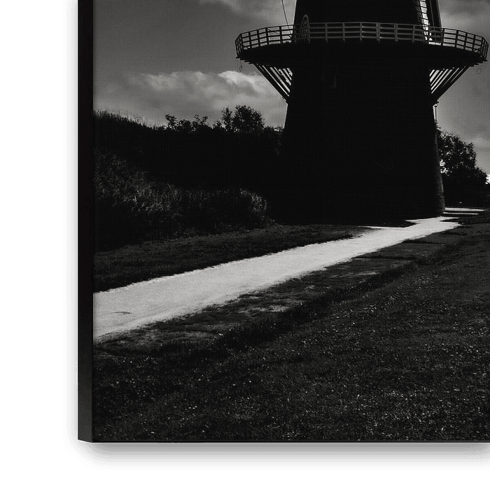 A high key black and white photo of the windmill heap. This windmill is located in the city of Gorinchem. Through the beautiful white clouds you can see the sails of the windmill.