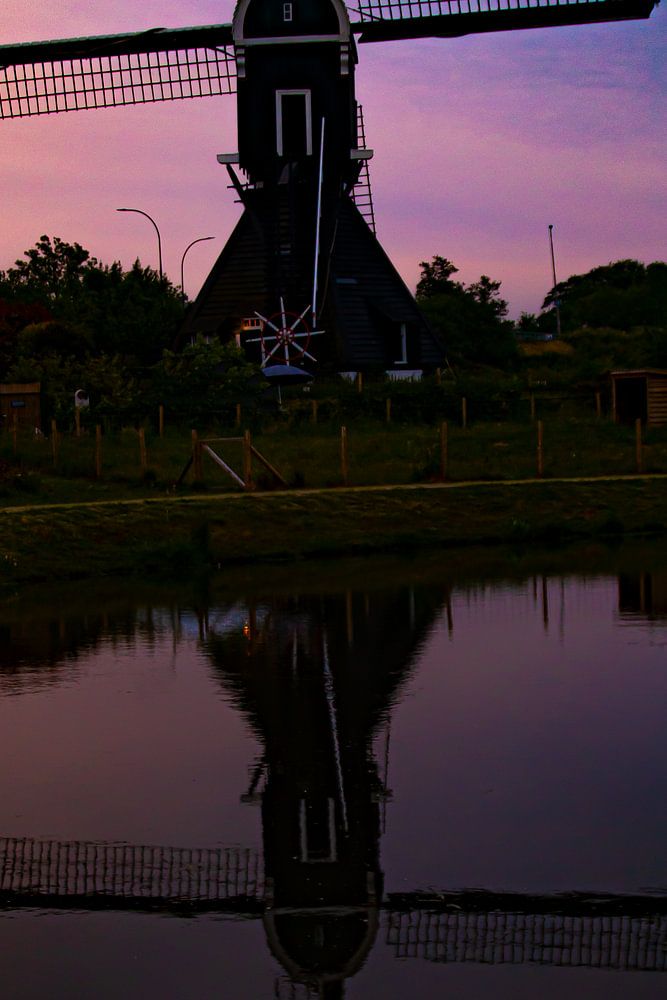 A colorful picture through a beautiful sunrise. You see the reflection of the windmill and the colours of the sky in the water. The photo was taken in Leerdam.