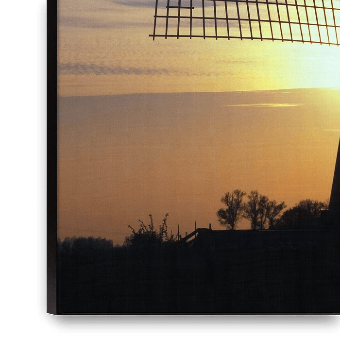 Buy this landscape artwork Windmill in Holland at sunset by Frans Rombout on canvas, ArtFrame, poster and wallpaper, printed on demand in high quality.