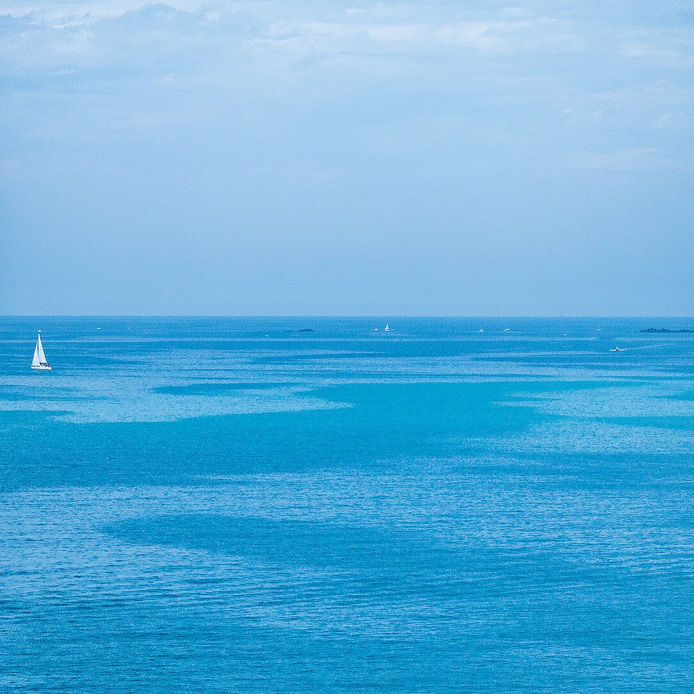 Imagine stepping through the thick, centuries-old walls of a coastal fort and being treated to this serene view. This artwork captures a moment of absolute tranquillity and freedom, framed by the rough, tactile texture of weathered natural stone. The warm, earthy tones of the stone frame form a powerful contrast with the vibrant blues…