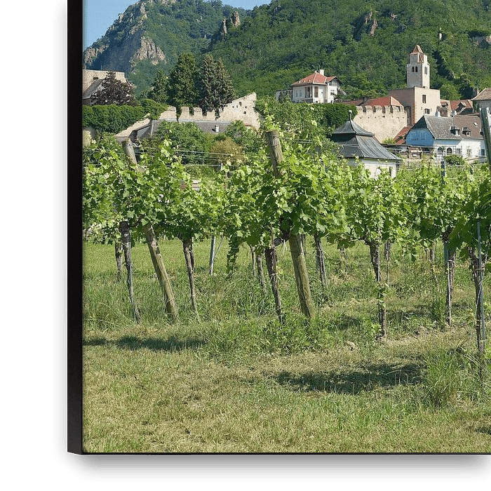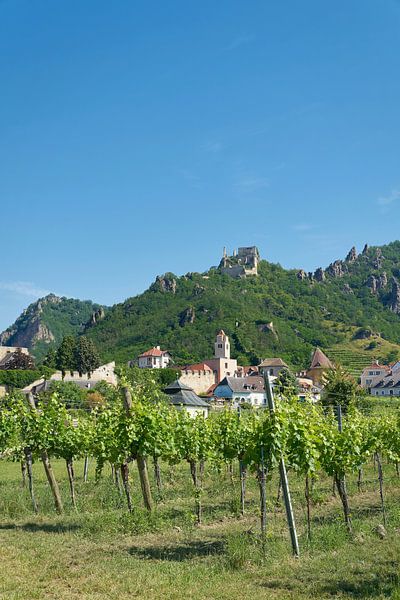 Buy the photo Wine growing near the village Dürnstein in the Wachau in Austria by Heiko Kueverling on canvas, ArtFrame, poster and wallpaper, printed on demand in high quality.