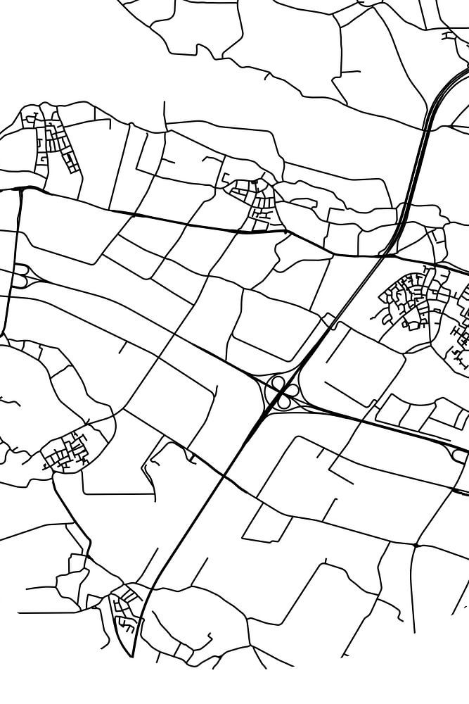 Black and white map, street map or street plan of Winssen. Winssen is located in Rivierenland region, in Beuningen municipality, Gelderland province. On the city map all public roads in Winssen are included. Furthermore, the map is provided with the coordinates of the center of Winssen.