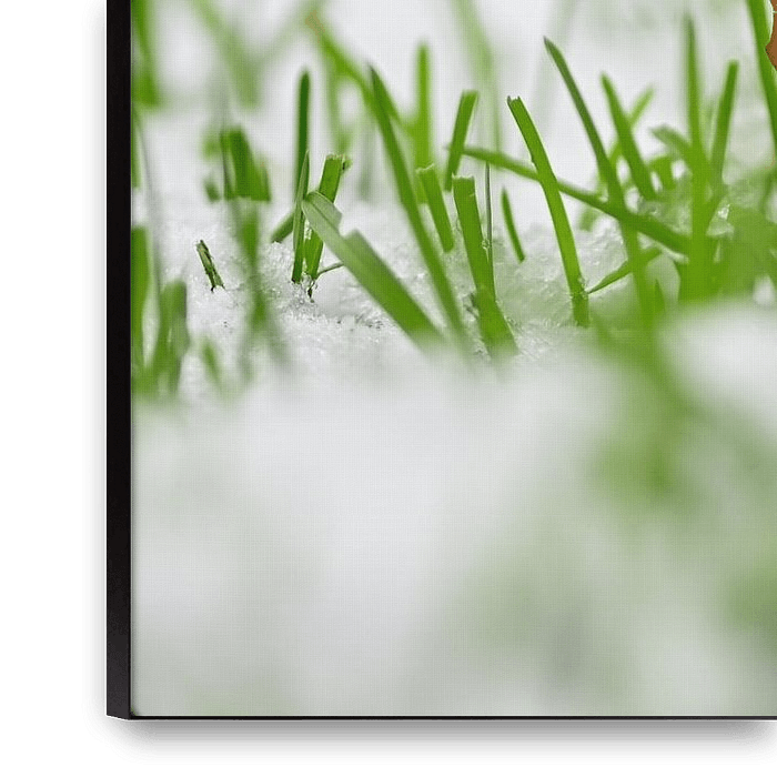 This hushed detail image captures the transition between seasons in a fragile and artistic way. A single, golden brown autumn leaf rests in the frozen grass, slowly embraced by a fresh layer of snow. The fine veins of the leaf and the individual ice crystals on the blades of grass are brought into sharp focus by the macro photography,…