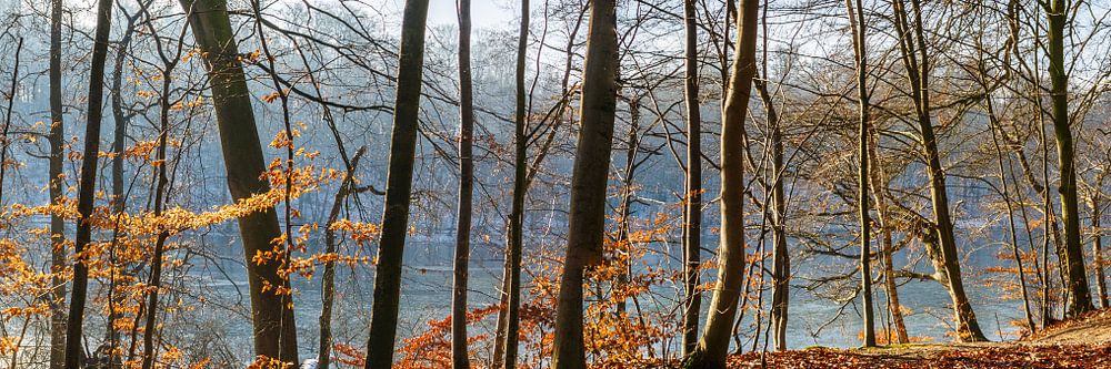 Buy this landscape artwork Winter forest at the lake by Werner Reins on canvas, ArtFrame, poster and wallpaper, printed on demand in high quality.