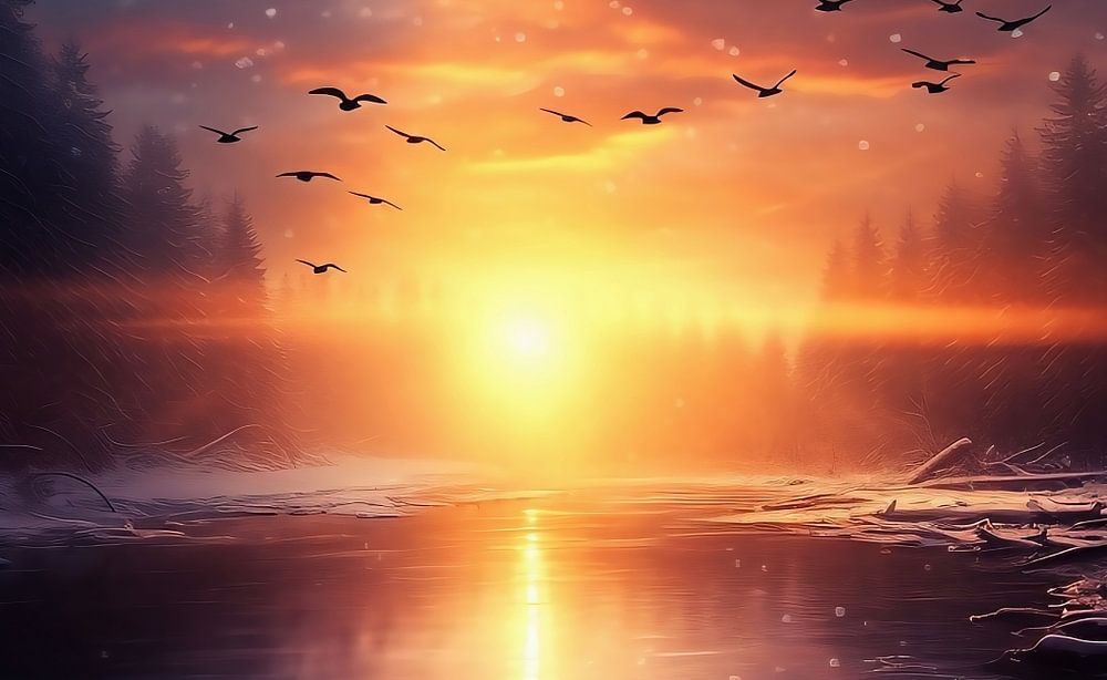 Buy this landscape artwork Winter landscape at sunrise by fernlichtsicht on canvas, ArtFrame, poster and wallpaper, printed on demand in high quality.