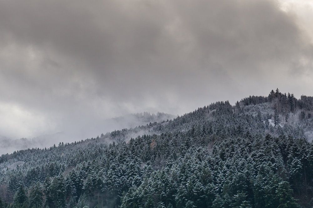 Winter landscape with snow covered trees in the untouched nature of the black forest in Germany