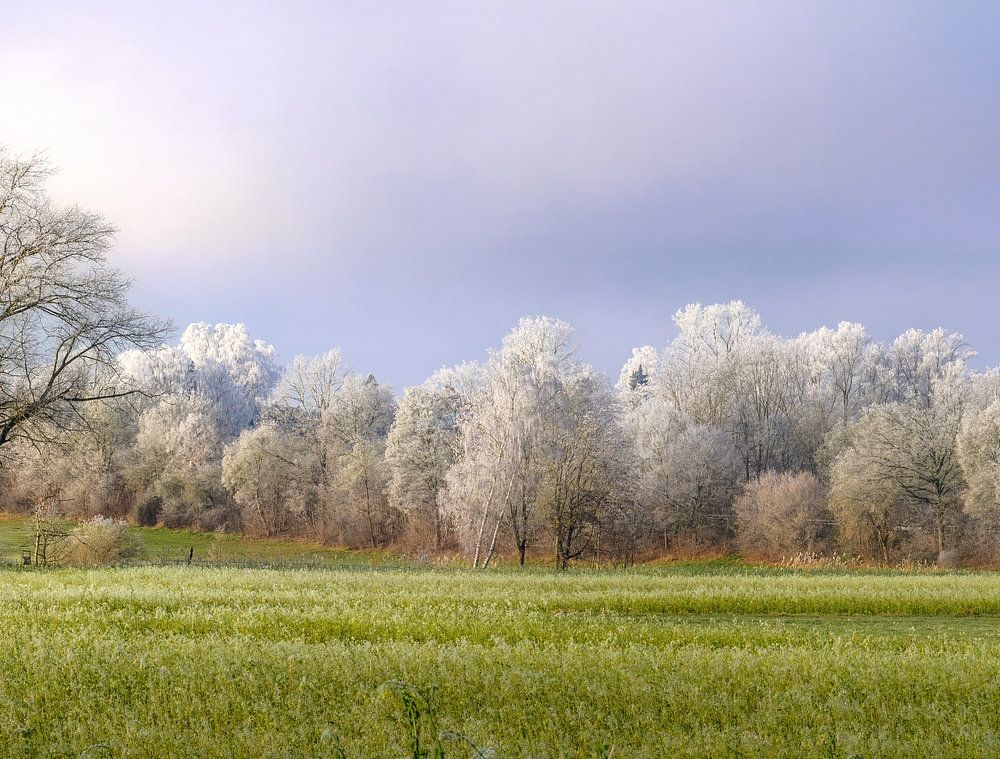 Winter landscape near Schrobenhausen with trees covered in frost