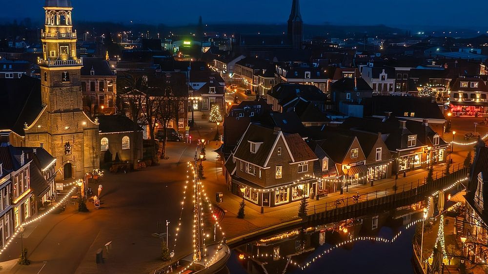 On a winter evening, Lemmer harbour looks quiet and festive. The warm light of illuminated historic boats reflects in the water, bringing tranquillity and nostalgia together in one image.