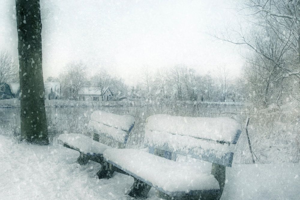 Dutch winter landscape near the town of Weesp. The banks are covered with snow. Last night a lot of snow had fallen which resulted in beautiful pictures in the morning. To give it a nostalgic look, the photo was edited in Adobe Photoshop.