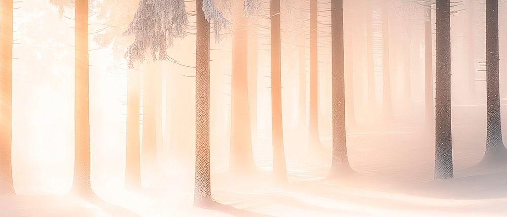 An enchanting winter forest unfolds its magic in the soft light that shines between the snow-covered trees. The harmonious combination of white and gold conveys a feeling of peace and tranquillity. Ideal for the bedroom to create a dreamscape that invites you to relax and escape from everyday life.