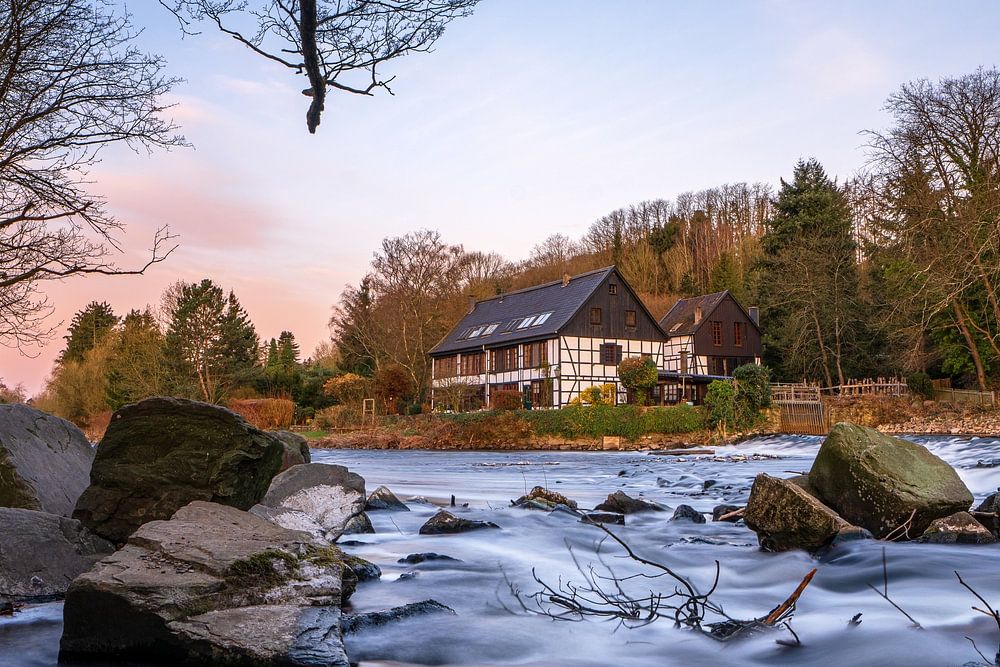 Morning atmosphere at the Wipperkotten on the banks of the Wupper, Bergisches Land, North Rhine-Westphalia, Germany