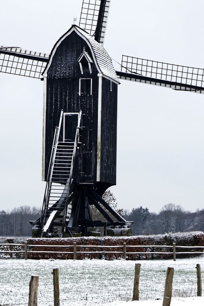 While I was on my way, it started snowing again. This made the mill that was on my route have a beautiful contrast with the surroundings.