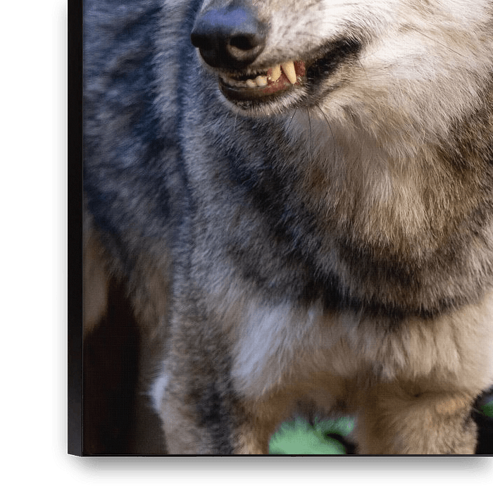 Buy the photo Wolf showing his teeth by Jack Van de Vin on canvas, ArtFrame, poster and wallpaper, printed on demand in high quality.