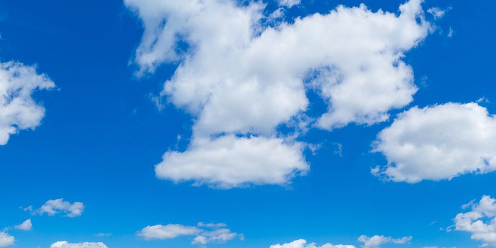 Mooie blauwe lucht met wolken boven een knal geel veld met koolzaadbloemen