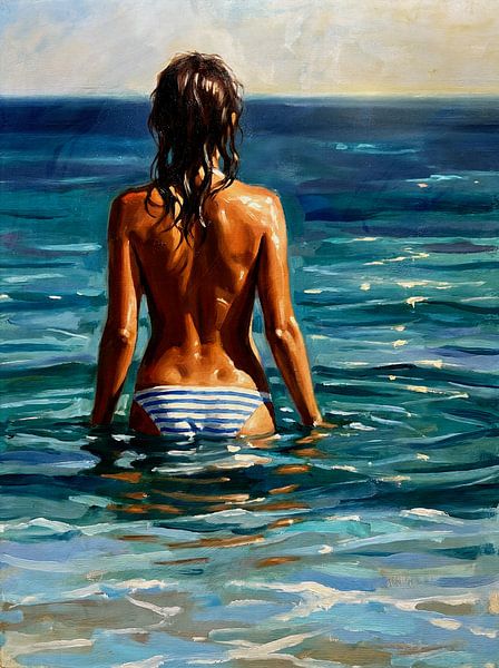 Buy this painting Woman Standing in Calm Ocean Waters by Jan Keteleer as a reproduction on canvas, ArtFrame, poster and wallpaper, printed on demand in high quality.