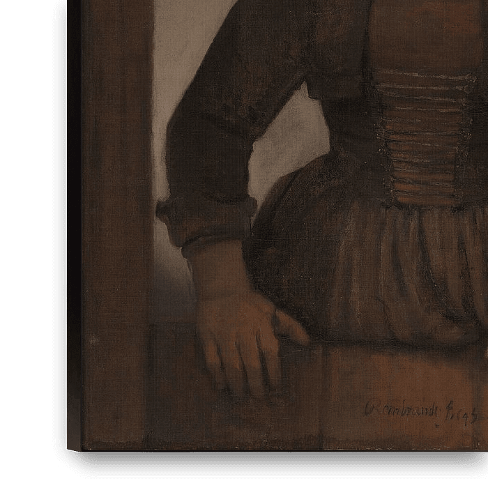 Buy Woman at a half-open door, Samuel van Hoogstraten as a reproduction on canvas, ArtFrame, poster and wallpaper, printed on demand in high quality.