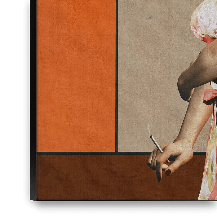 Self-assured, this lady looks at the viewer. She smokes a cigarette, indicating that there are no rules for her. A typical strong woman.