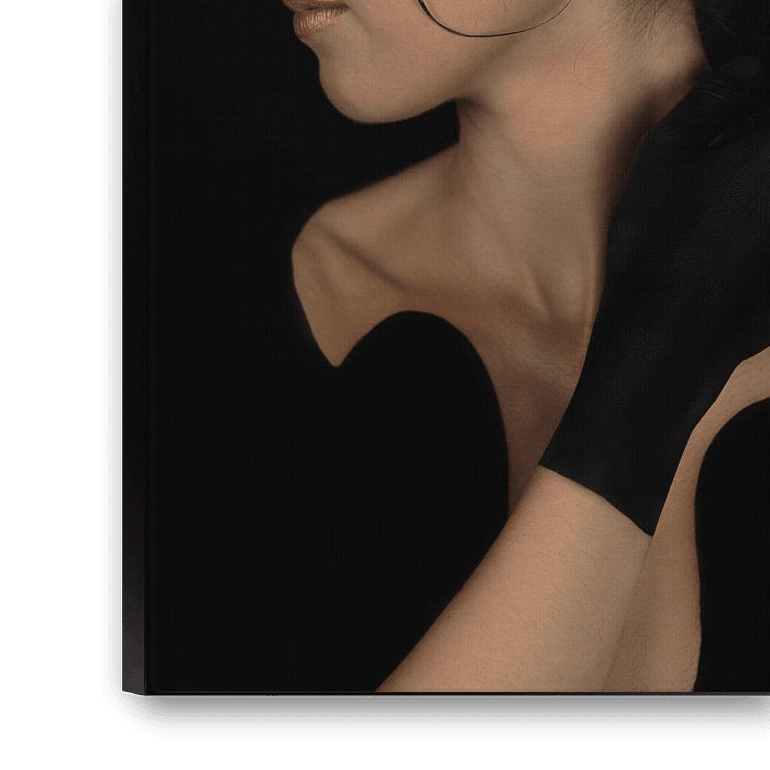 The work radiates elegance, yet holds something elusive — a tension between distance and intimacy, control and surrender. Every detail feels deliberate, yet the composition breathes calm and restraint.