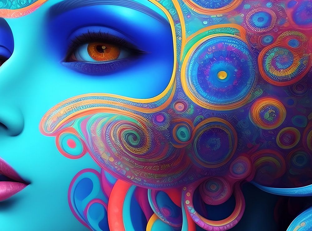 Buy this digital art artwork Woman intoxicated by colour by DeVerviersBelgium as a reproduction on canvas, ArtFrame, poster and wallpaper, printed on demand in high quality.