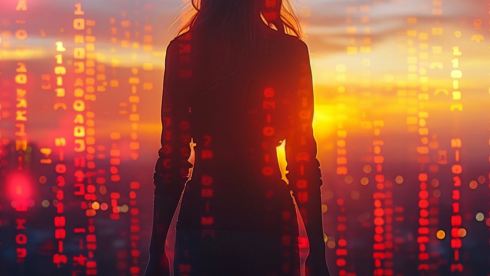 Buy this digital art artwork Woman reflects on her successful career by de-nue-pic as a reproduction on canvas, ArtFrame, poster and wallpaper, printed on demand in high quality.
